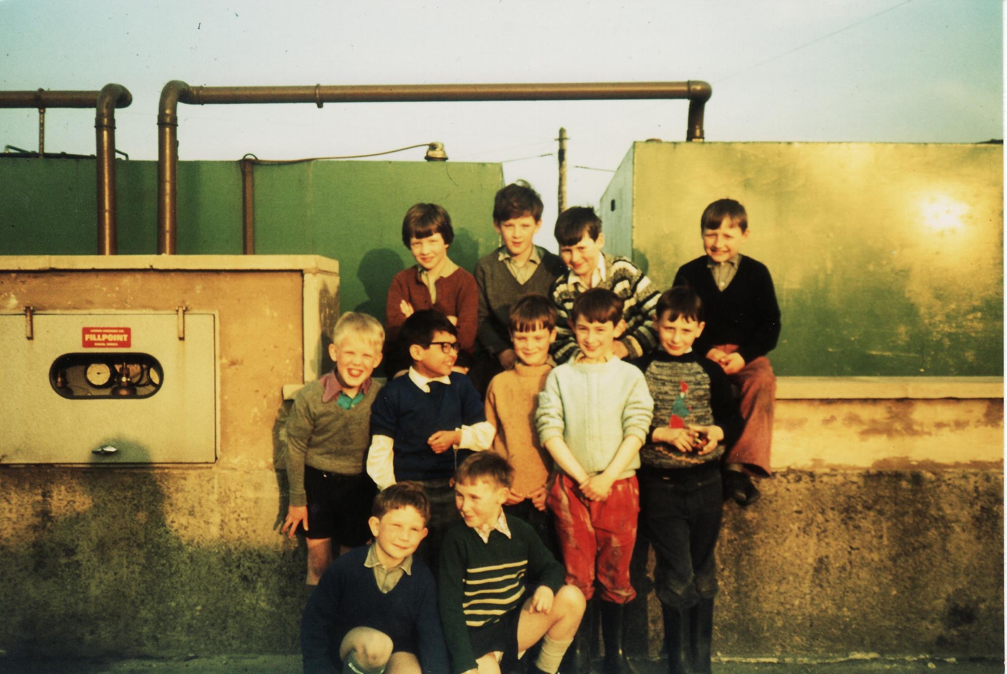 A group of pupils stood by the old coal storage area, at this time used for the storage of oil fuel.