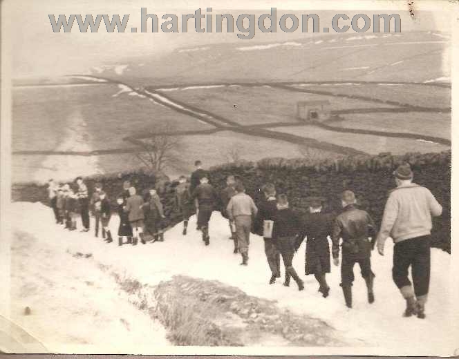 Top. Group of boys somewhere on the tops enjoying a walk in the cold. Bitter cold and deep snow made no difference. We would go walking no matter the weather. Difficult to place this picture, and impossible to identify