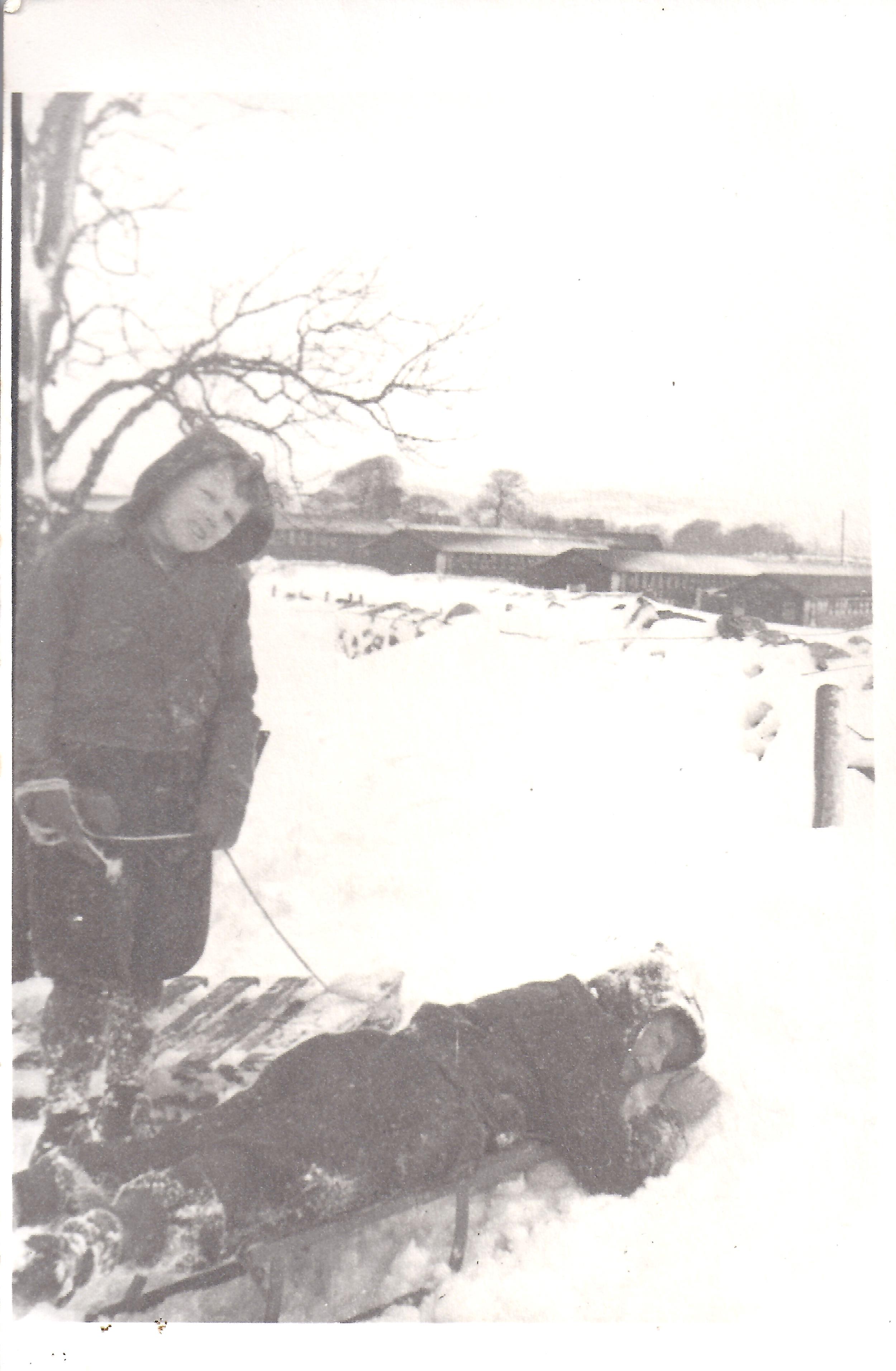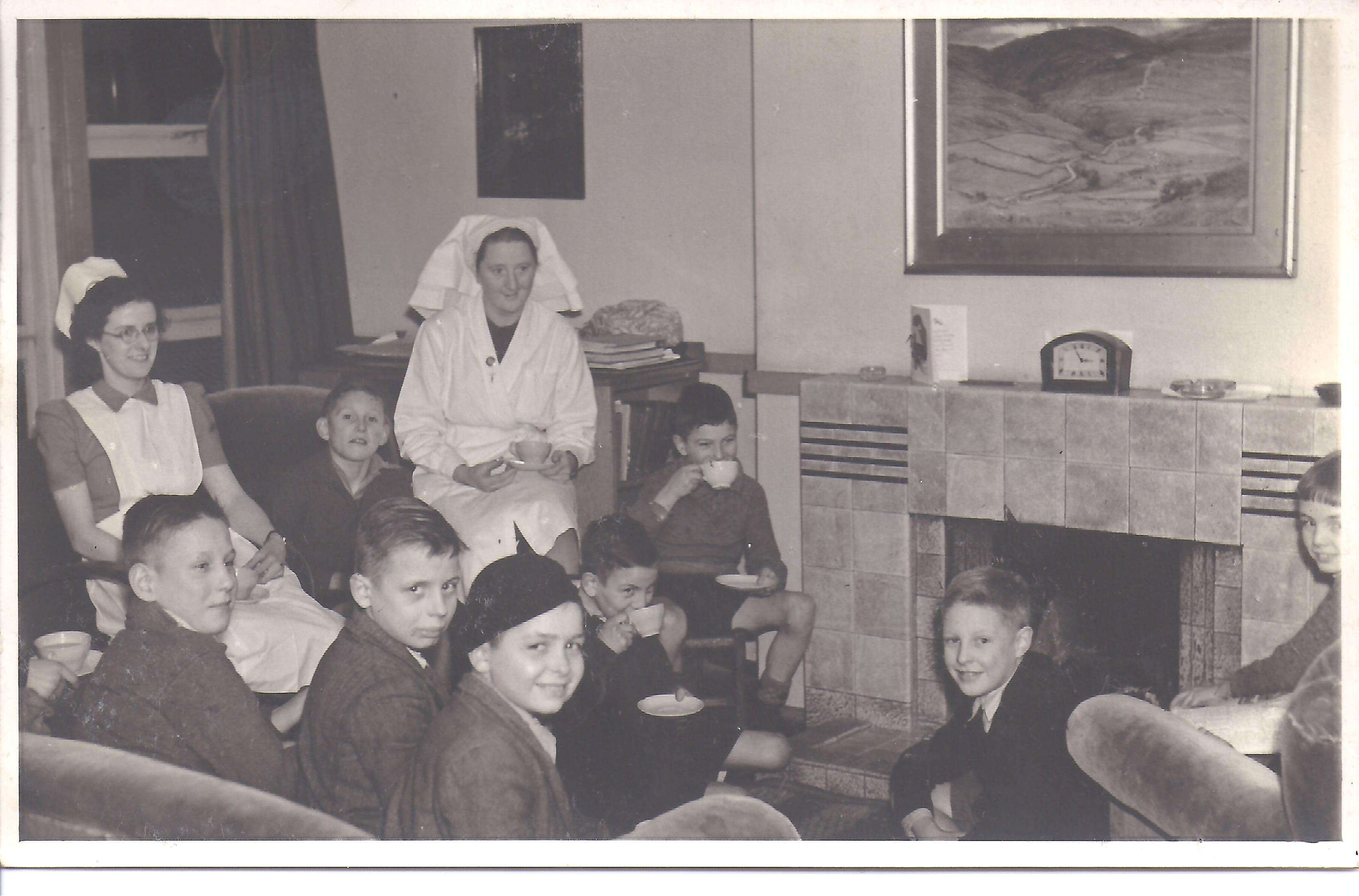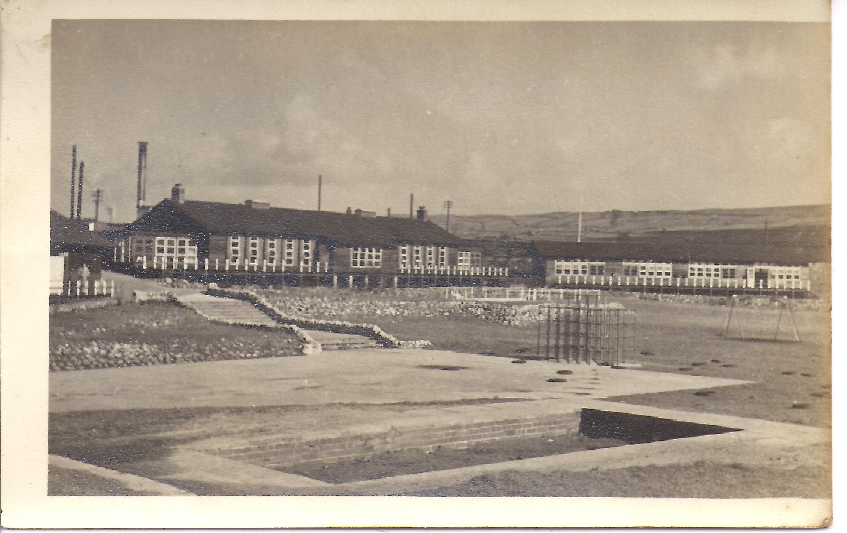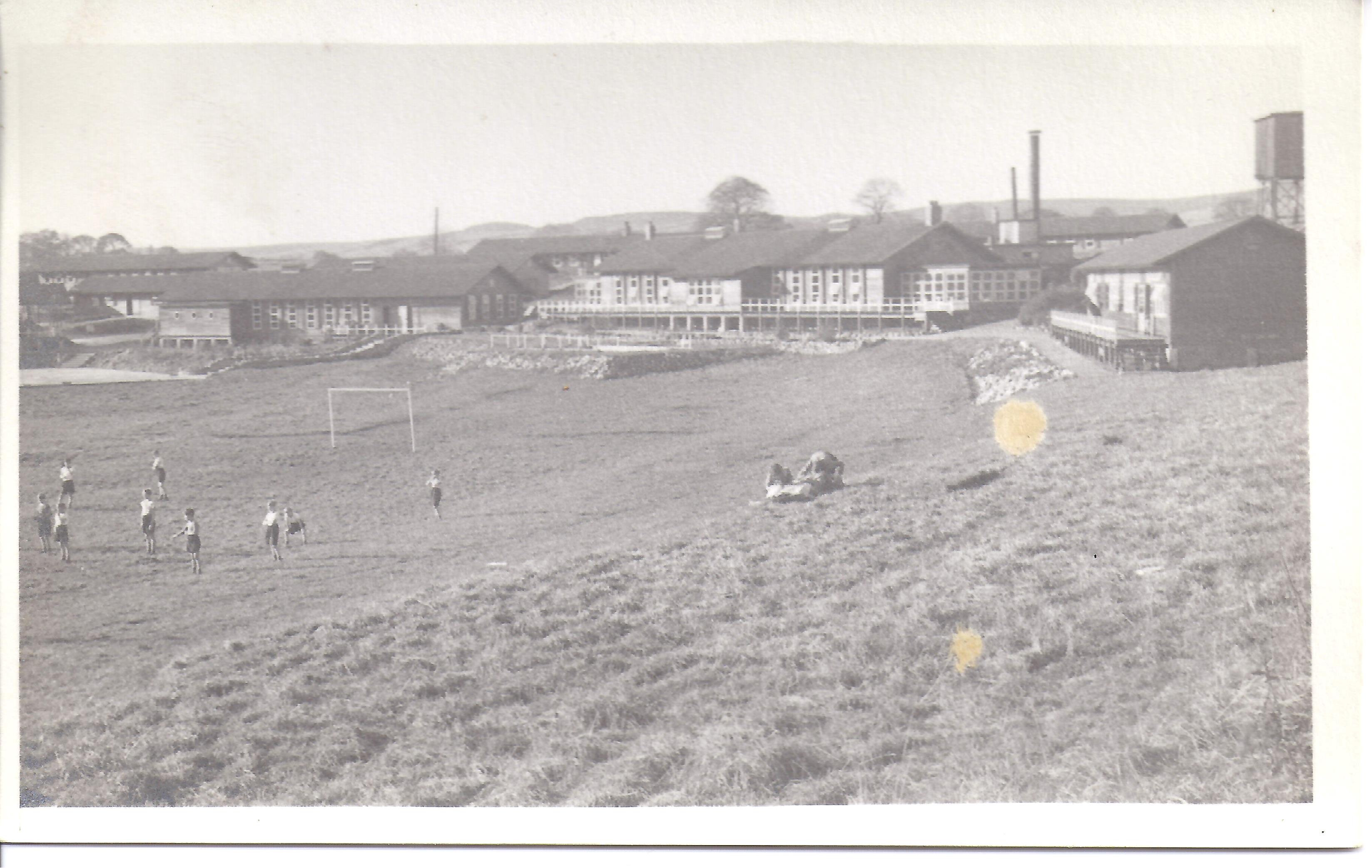 Two playing on their sledges near the sunken air raid shelters.Possibly an outward bound lesson. Staff dining room rear of the classic car.View over the Paddling Pool towards the Dining Hall, Swimming Pool, Jungle JimĀ and Classroom Block.View to the Classroom Block, Dining Hall and Assembly Hall. The area where the boys are playing football was flooded to a depth of 2 feet after the great freeze of 1962 forming a massive lake!Group of senior boys stood by the triangle next to the boys ablutions.Staff with a young Jesse Suttle on the right. (Mrs Robson to be)I think this may be inside the Clinic, possible in Nurses apartment. Photographs of the inside of the clinic are rare.