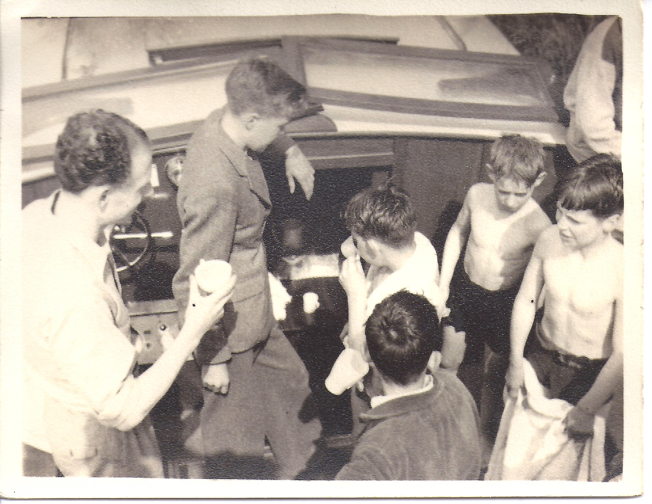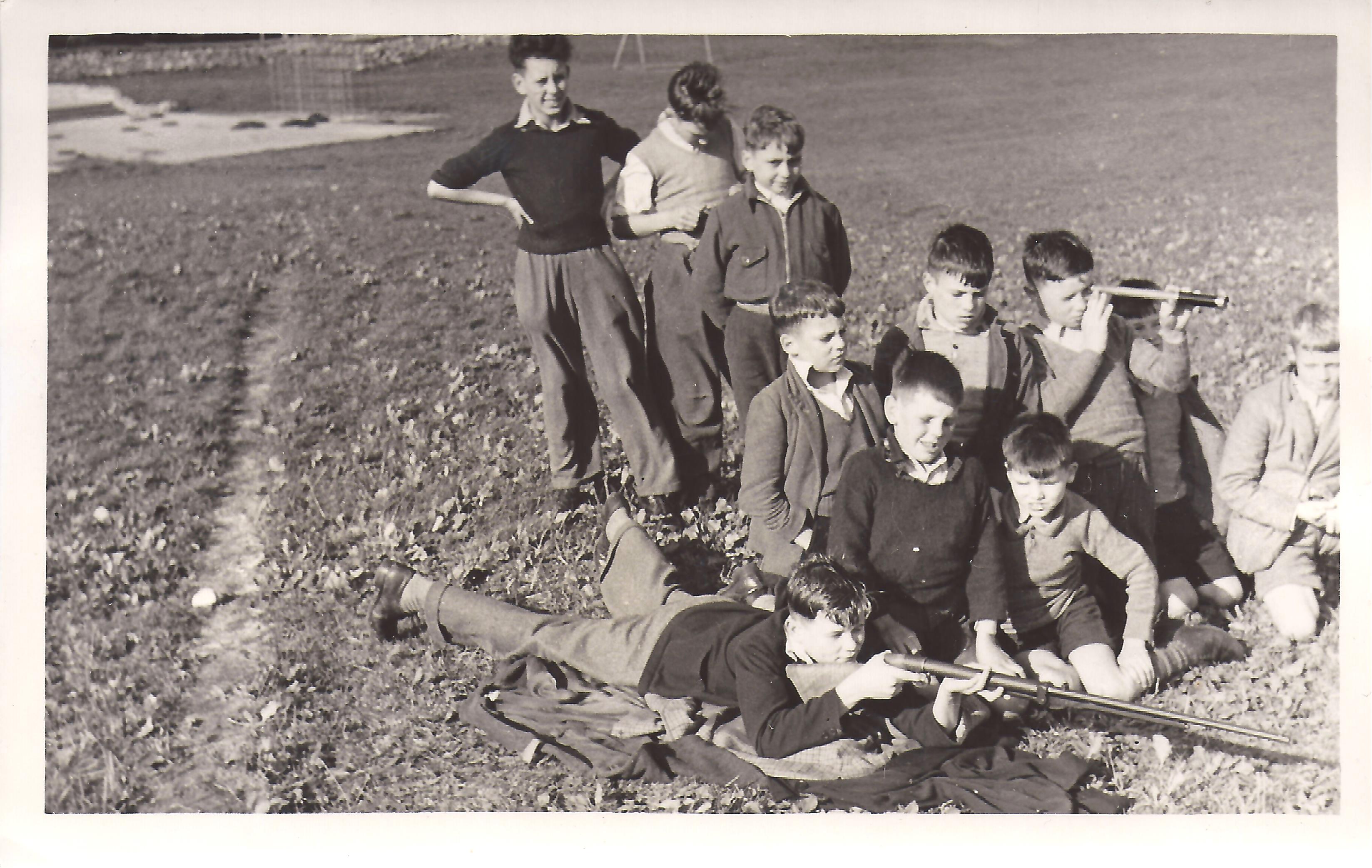 Bonfire. Everybody loves a big fire, although the Gym was a fire too far!Boys with, possibly, an Air Rifle.Boys hike. Looks like top of Simons SeatGroup of boys posing.Christmas party for the young ones.Four young ladies in the swimming pool.Having fun in some water, location unknown.Don Robinson on a boat trip Lowestoft or Norfolk Broads, possibly Bridlington.